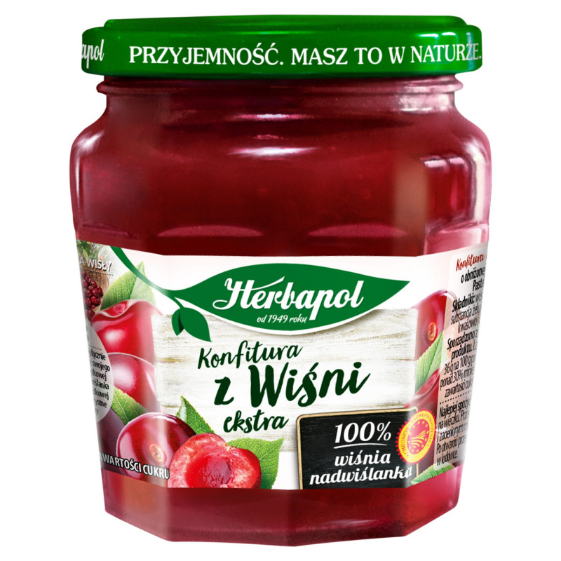 Konfitura ekstra z wiśni o obniżonej zawartości cukru.* Pasteryzowana.