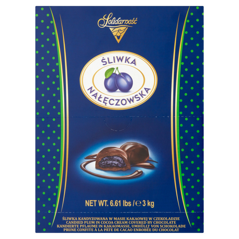 Śliwka kandyzowana w masie kakaowej w czekoladzie (40%)